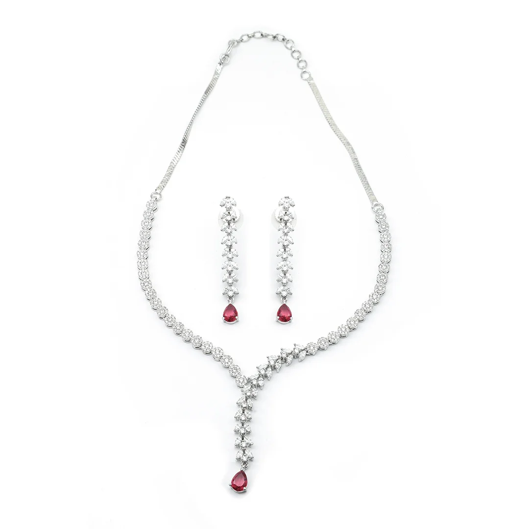 Crafted Necklace With Earring & White And Ruby Stone Turkish Set For Women’s