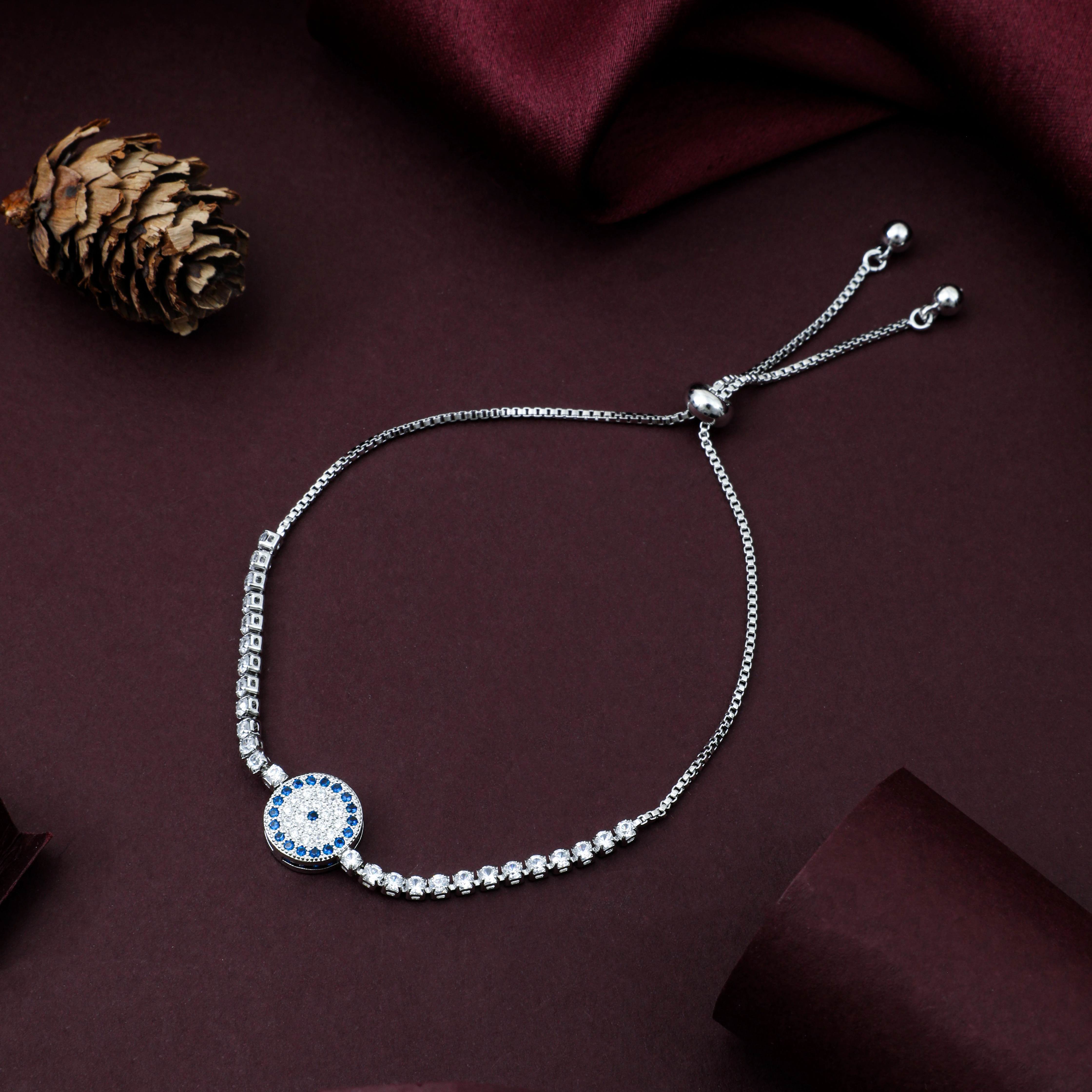 Be the first to review “Crafted Silver Plated Bracelet With Blue Stones Evil Eye Design Stone Studded For Womens” Cancel reply