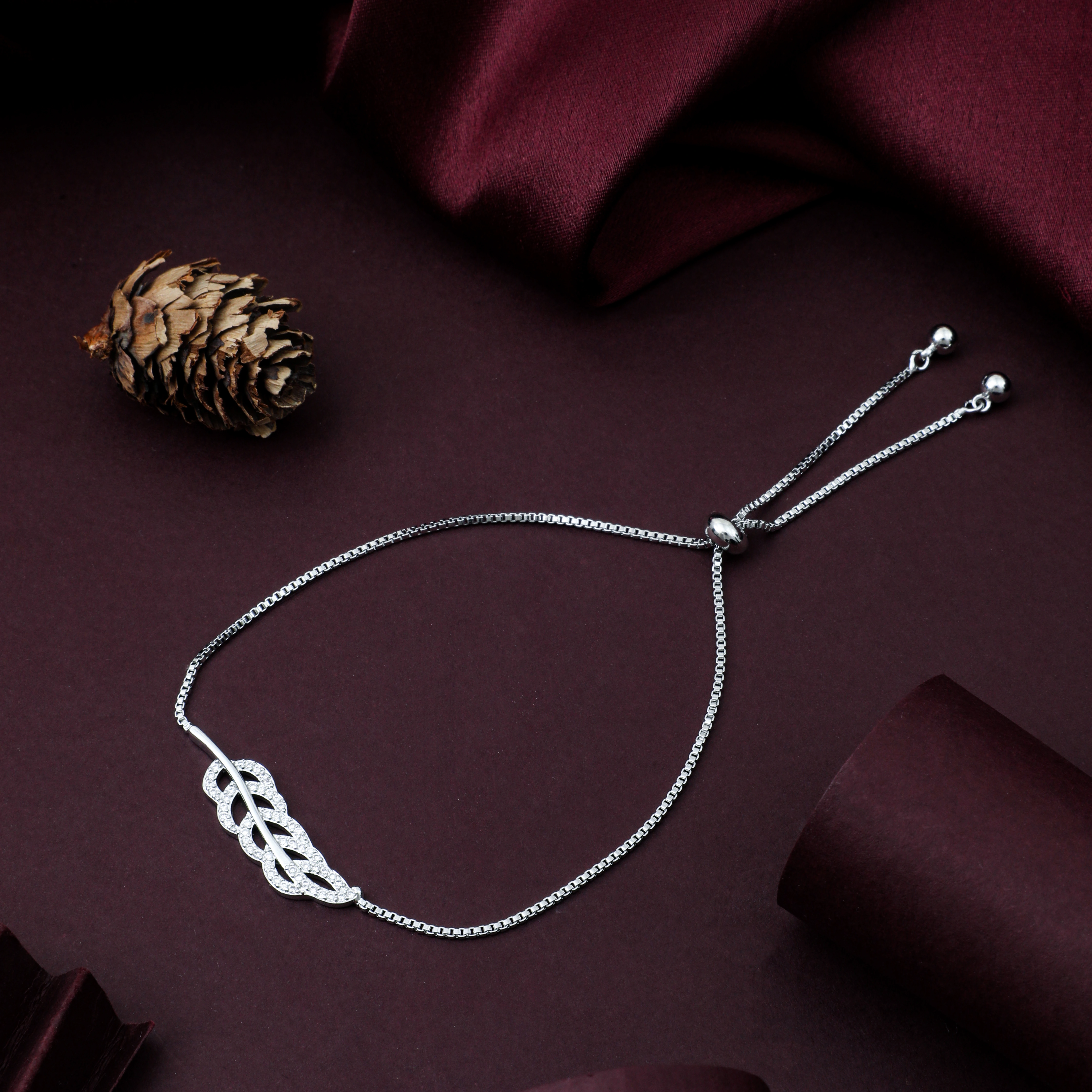Crafted Silver Plated Bracelet With Leafs Design Stone Studded For Womens