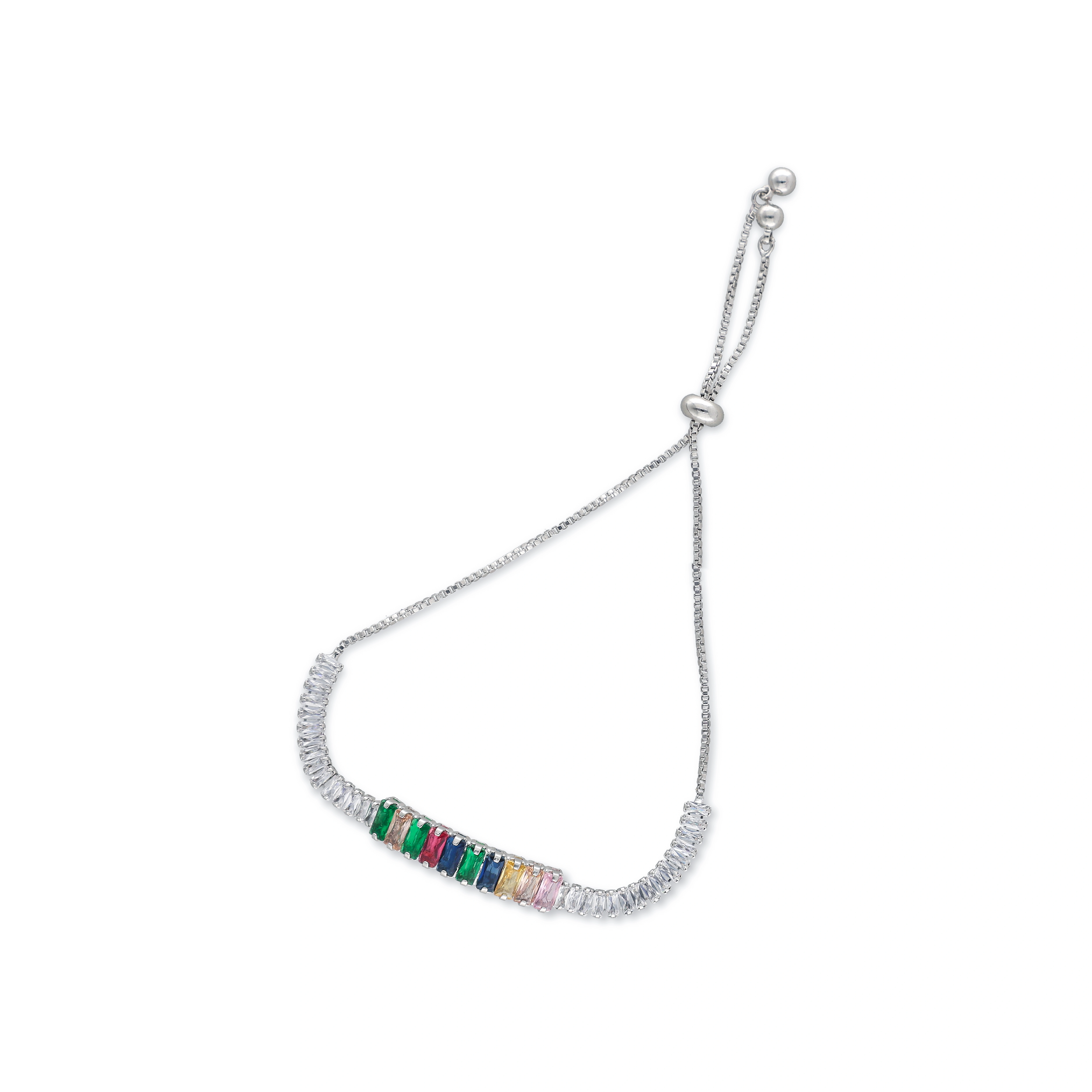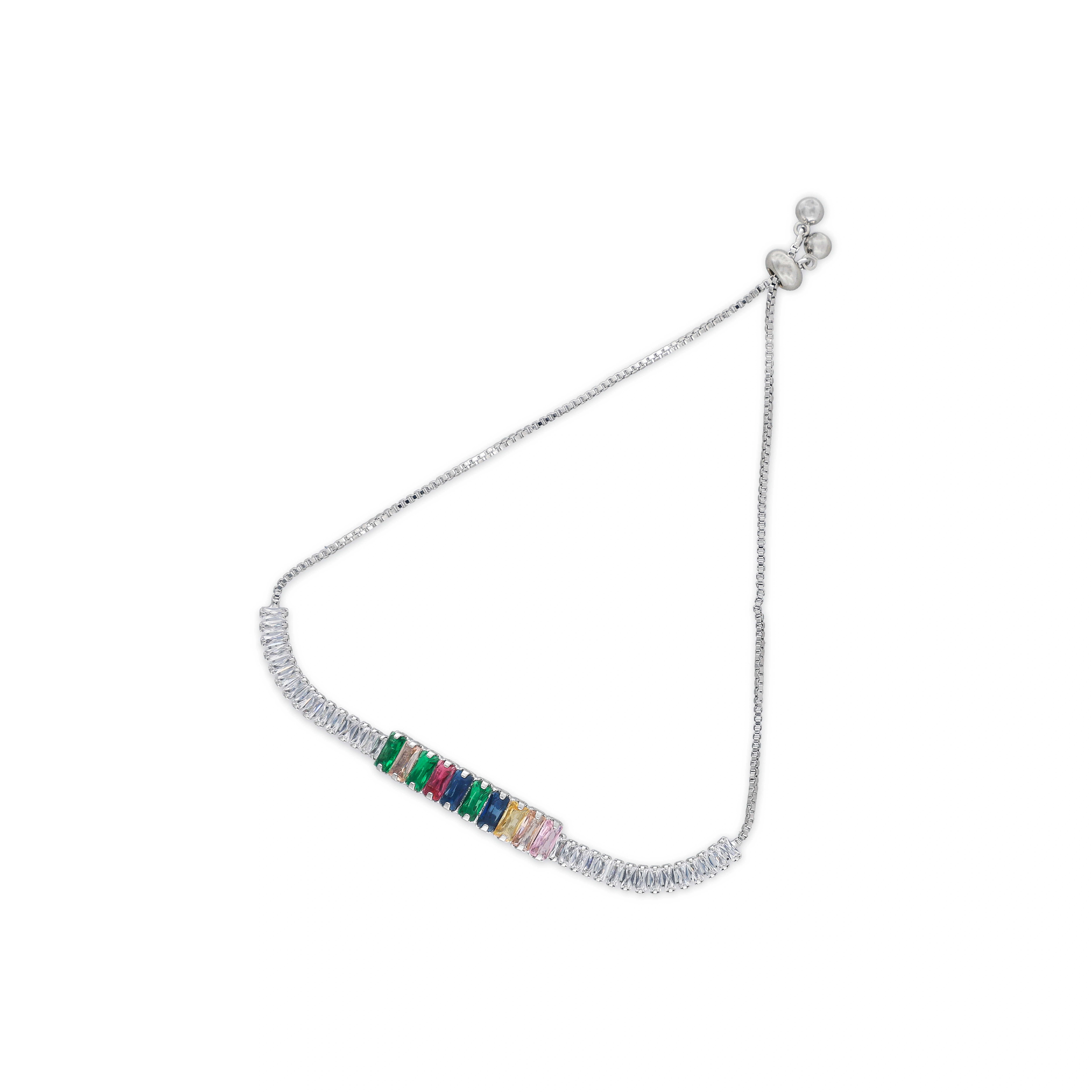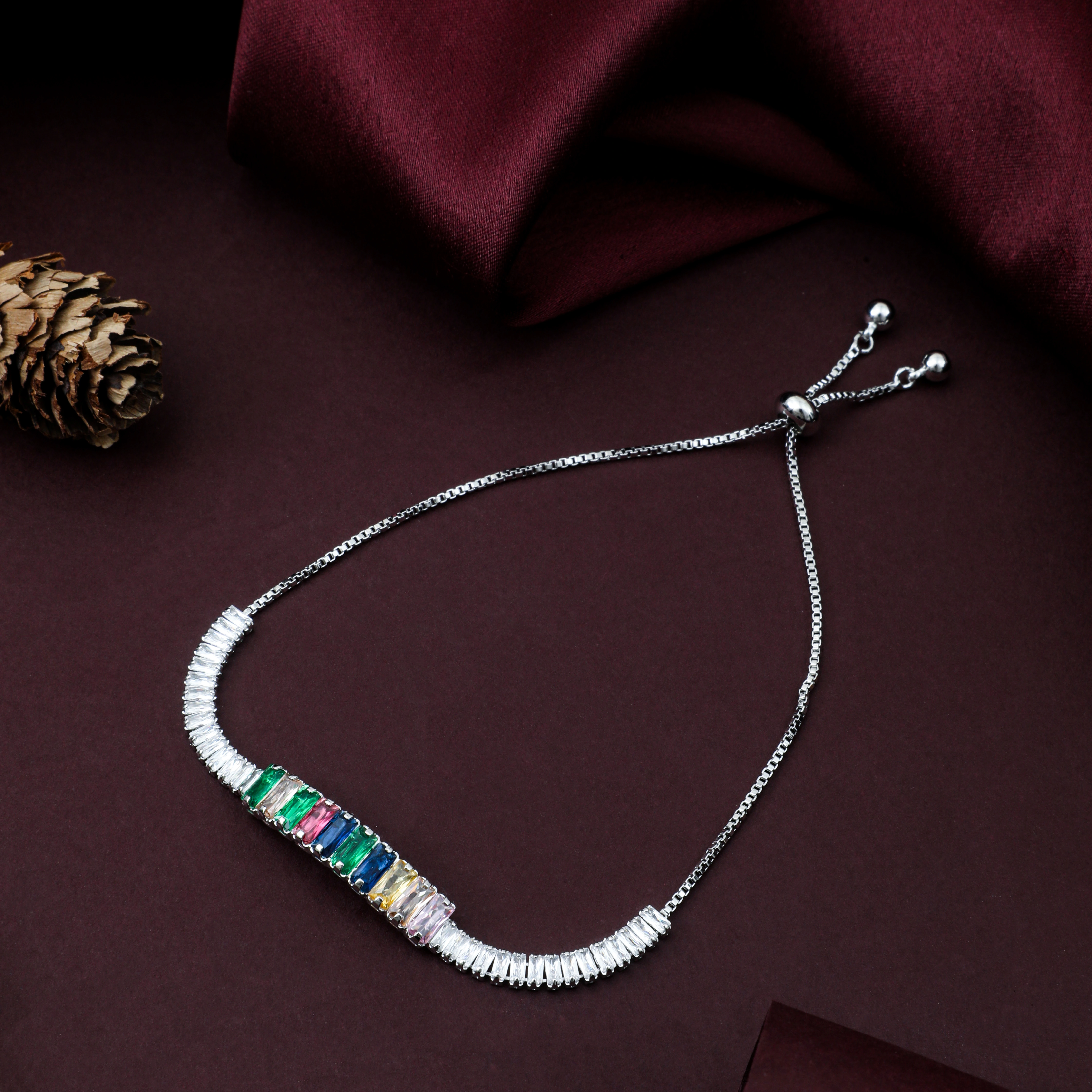 Crafted Silver Plated Bracelet With Multi Colour Stone Studded Design For Womens