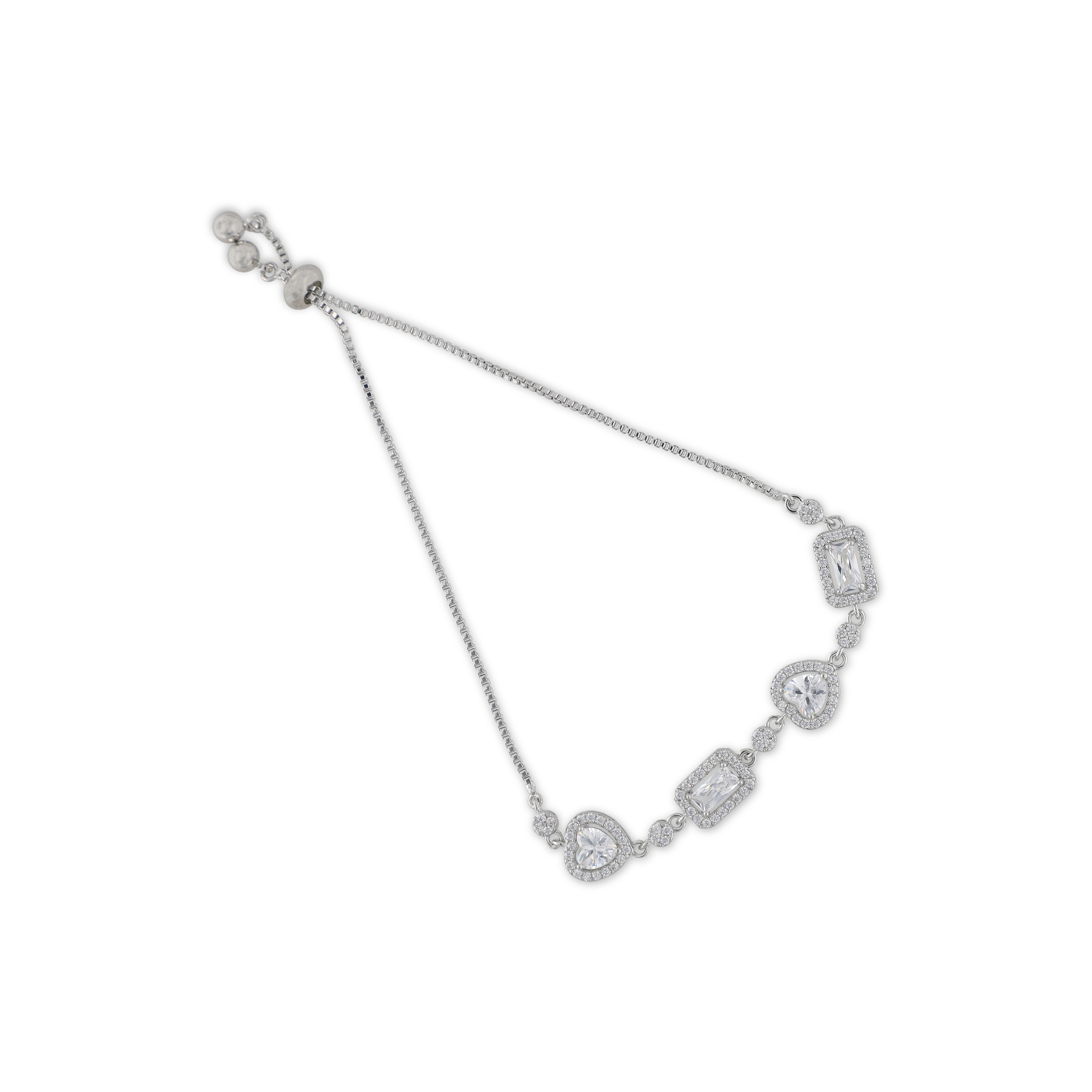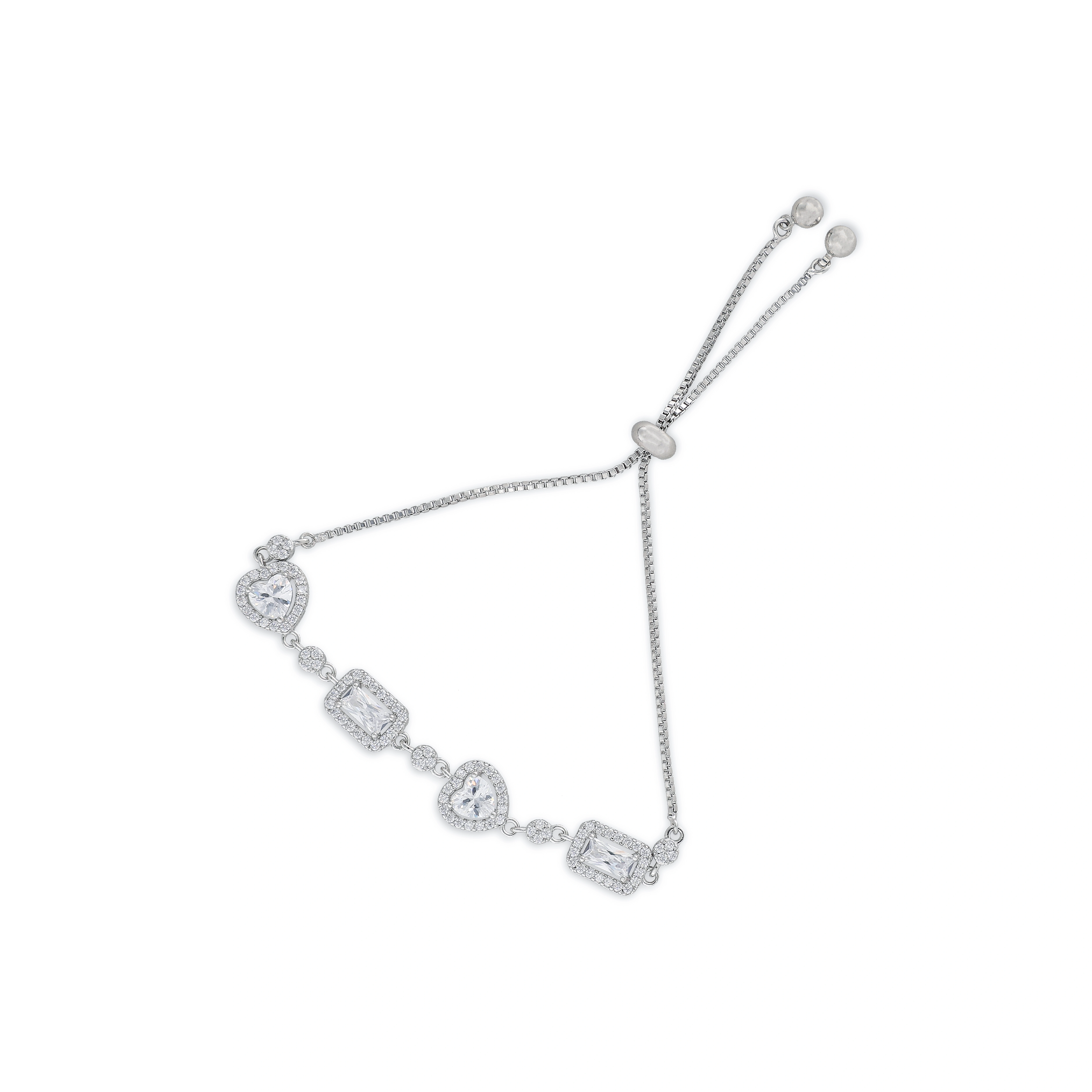 Crafted Silver Plated Bracelet With Square & Heart Shape Design Stone Studded For Womens