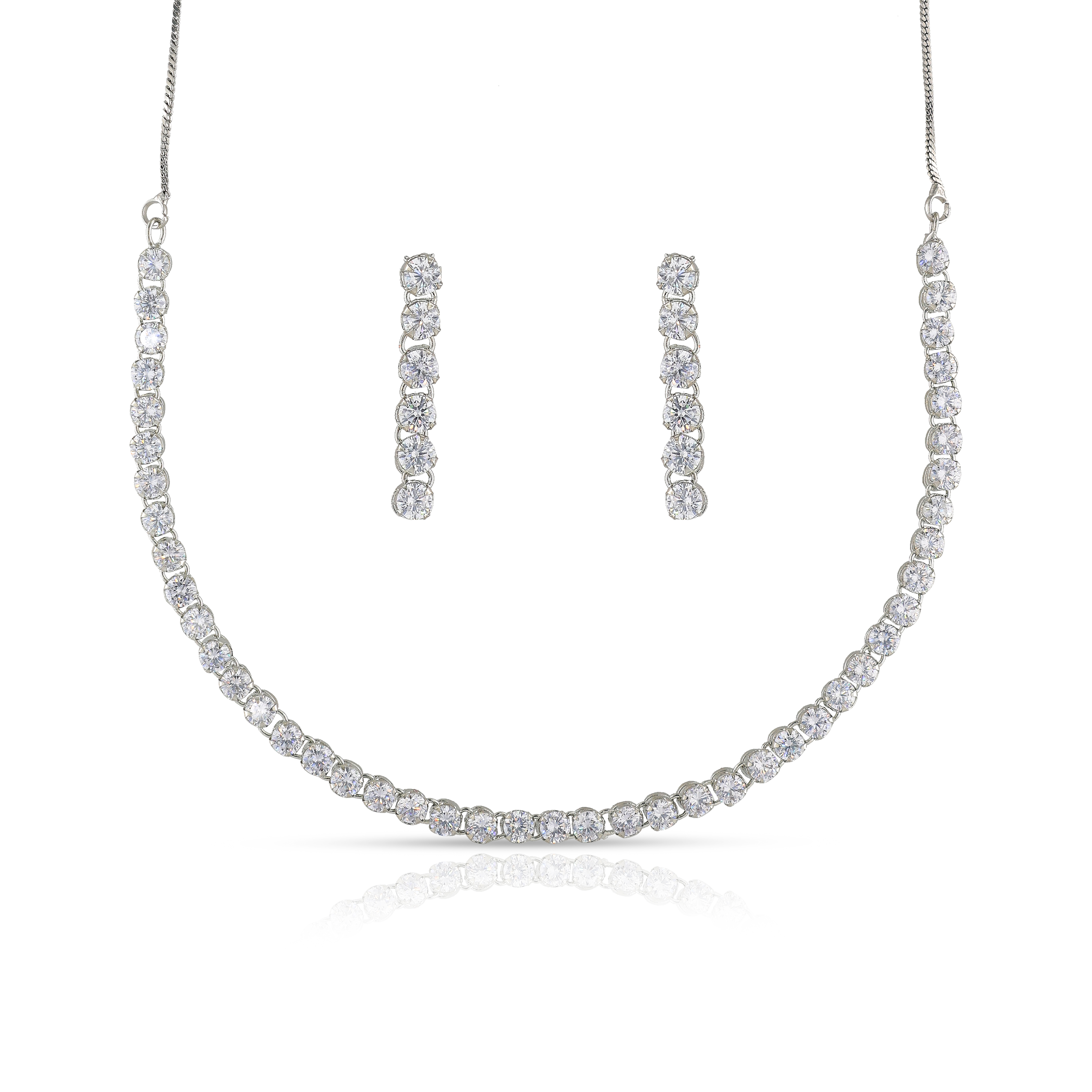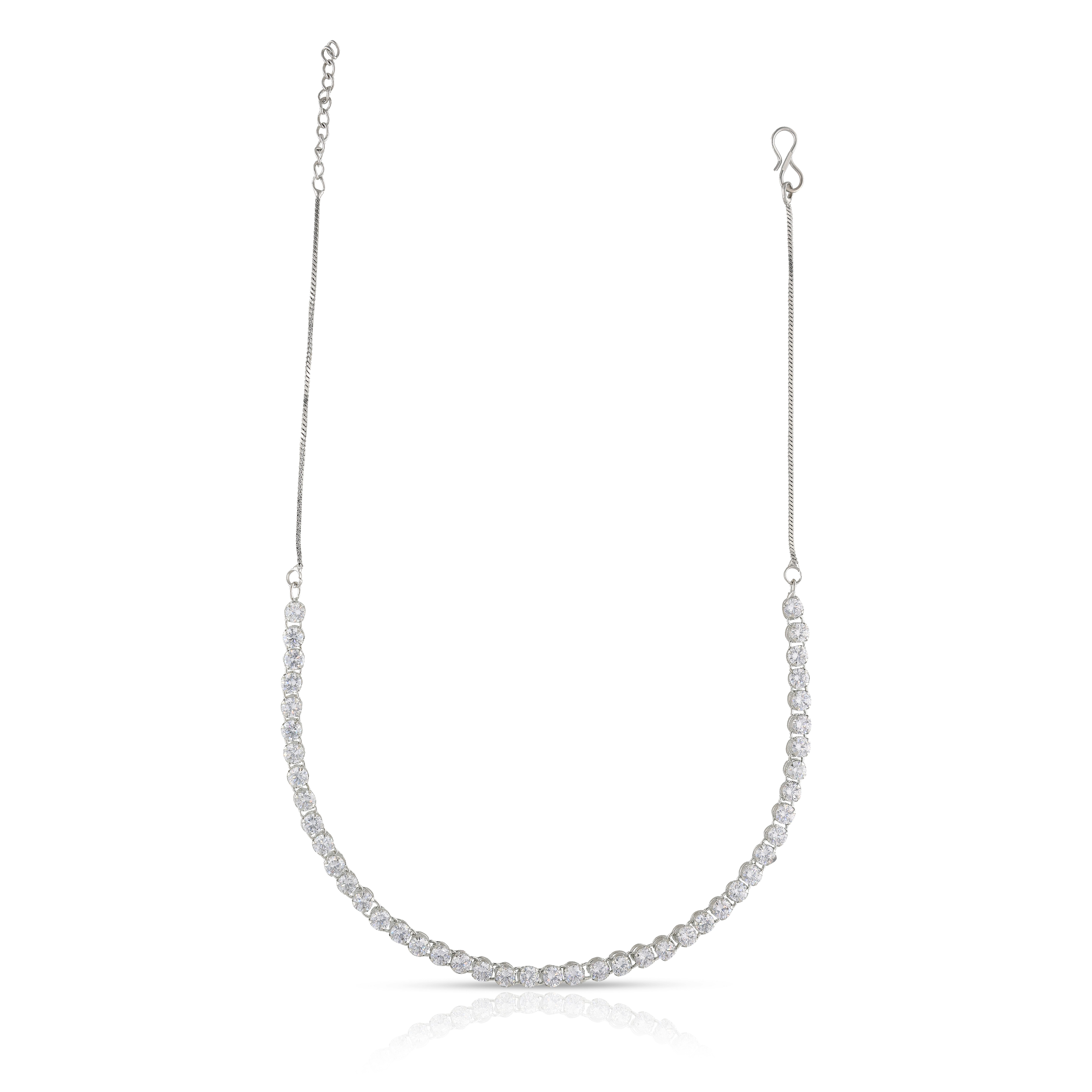 Crafted Silver Plated Necklace In One Layer With Stone Studded For Womens