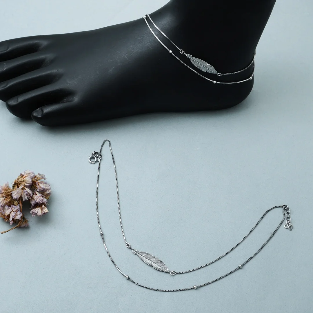 Pure Silver 925 2 Layer Leaf Anklet For Women’s