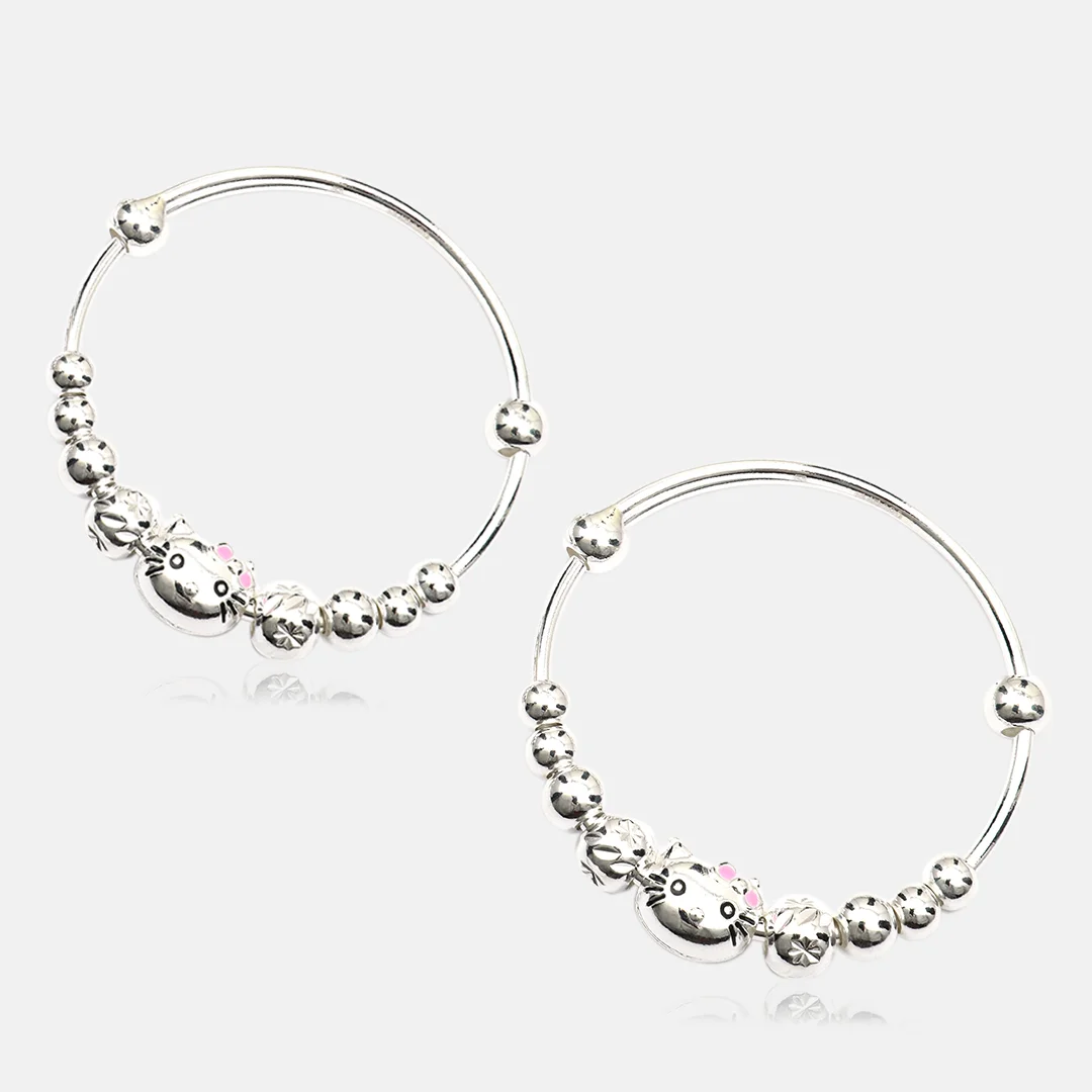 Pure Silver 925 Baby Kada With Kitty For Kids (06 To 12 Year)