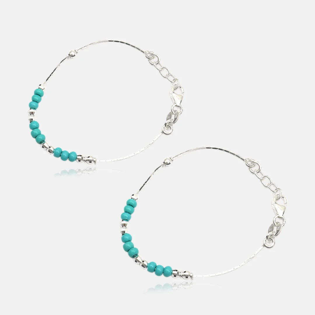 Pure Silver 925 Baby Nazariya With Colourful Beats For Kids (06 To 12 Year)