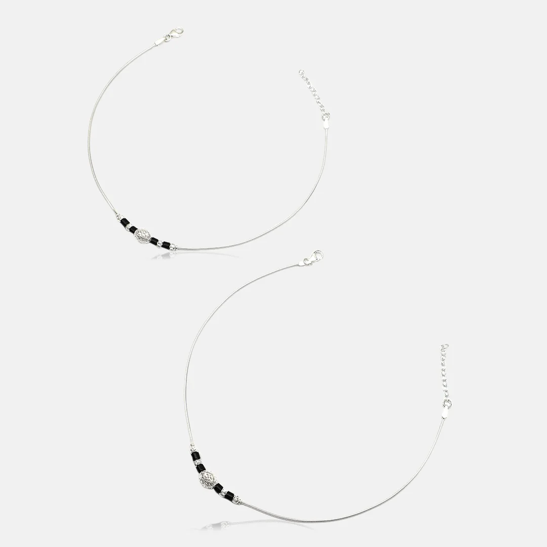 Pure Silver 925 Chain Anklet With Black Beats For Women’s
