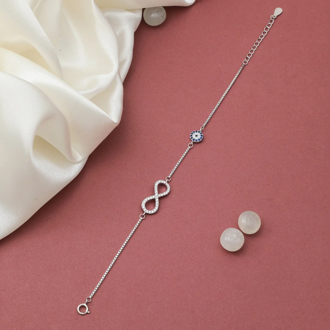 Pure Silver 925 Infinity & Evil Eye Pendant Design Bracelet For Women’s
