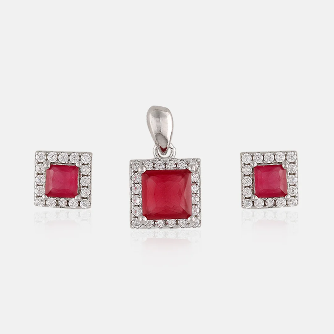 Pure Silver 925 Maroon Stone Pendant With Earring For Women’s