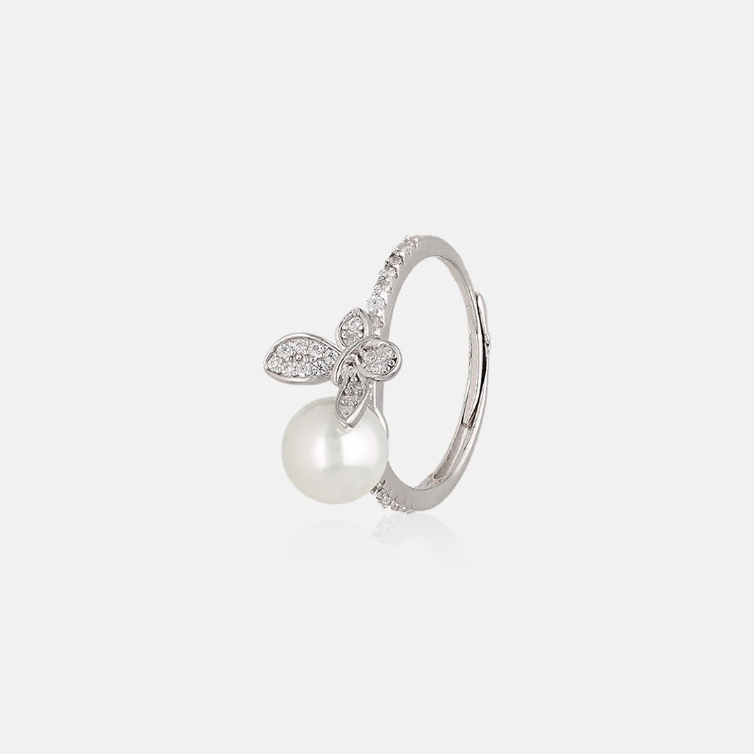 Pure Silver 925 Ring With Butterfly With Pearl Design For Women’s