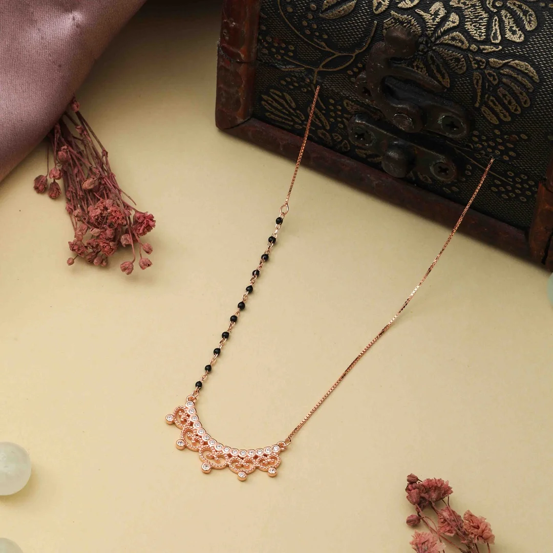 Pure Silver 925 Royal Grace Design With Rose Gold Polish Mangalsutra For Women’s