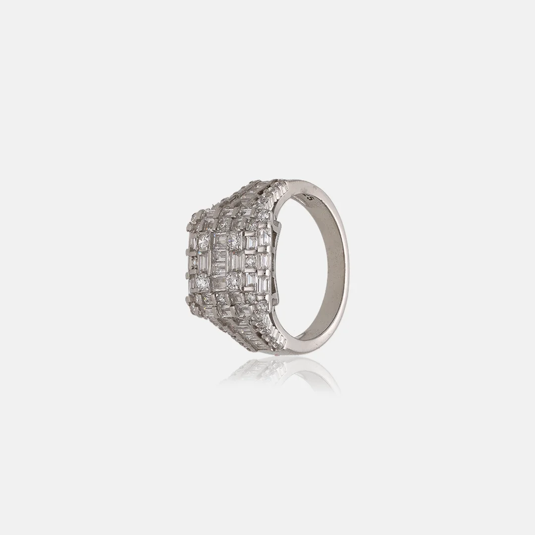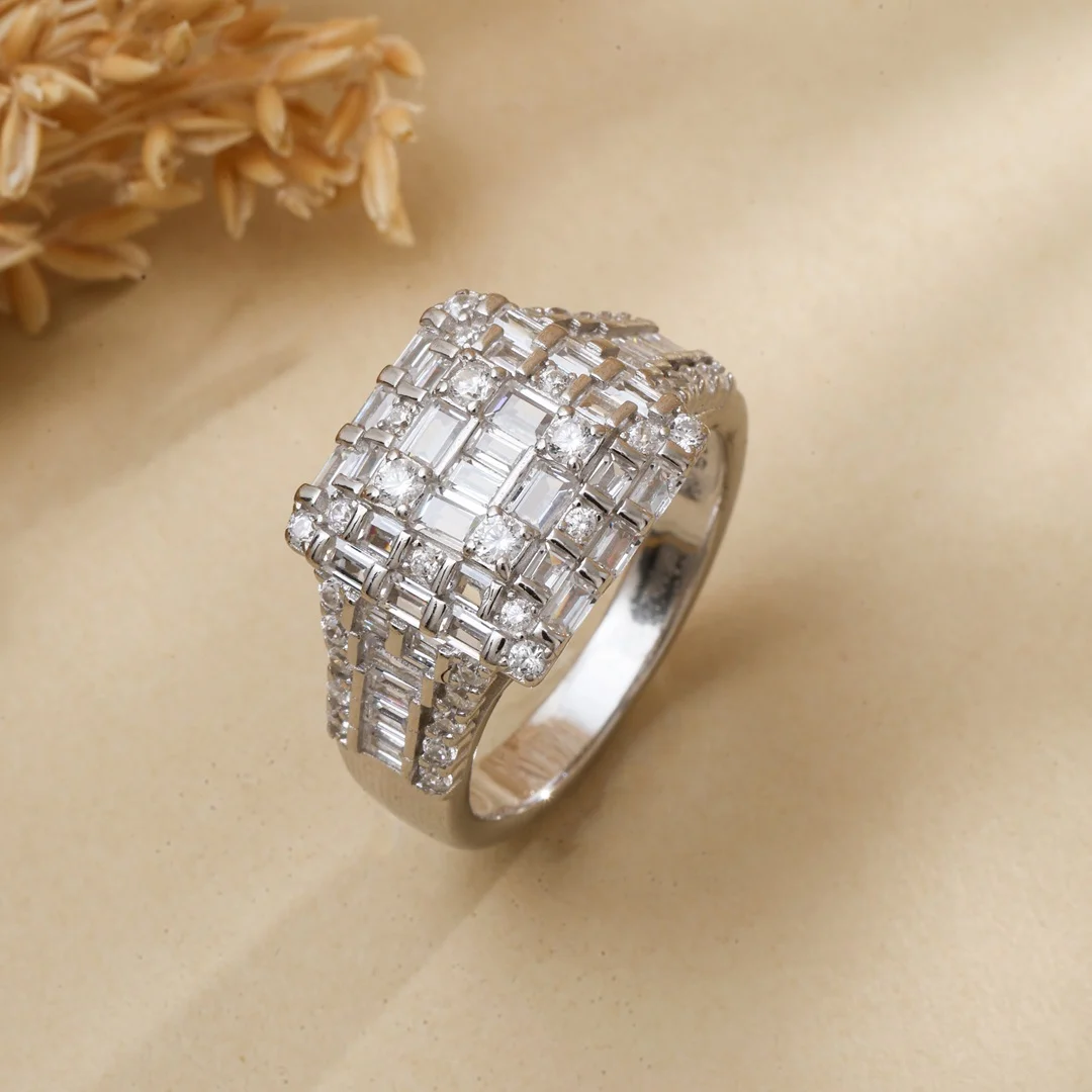 Pure Silver 925 Square Multi Stone Studded Ring For Men’s