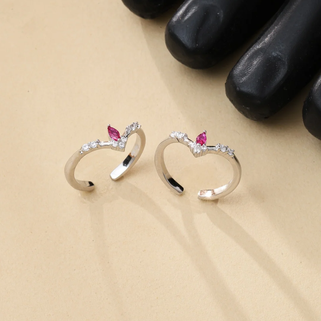 Pure Silver 925 Toe Ring With Stone Studded & 1 Single Maroon Stone With V Shape For Women’s