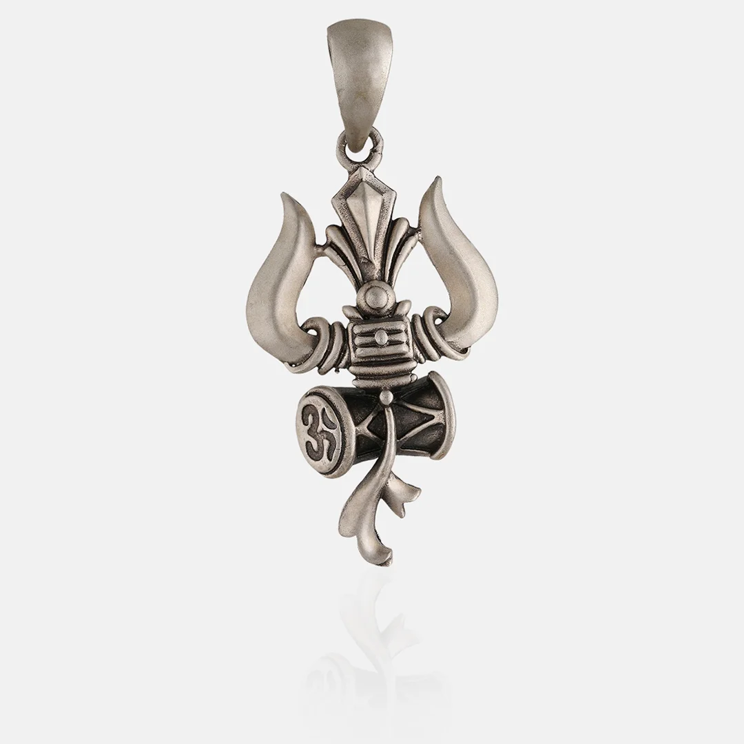 Pure Sterling Silver 925 Mahadev Dumroo & Trishul Pendant For Women, Men & Kids