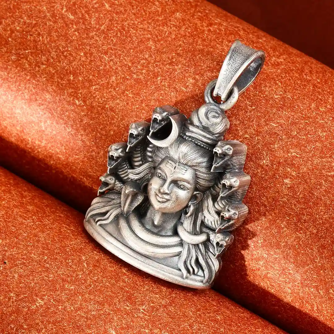 Pure Sterling Silver 925 Shree Mahadev With Snakes Pendant For Women, Men & Kids