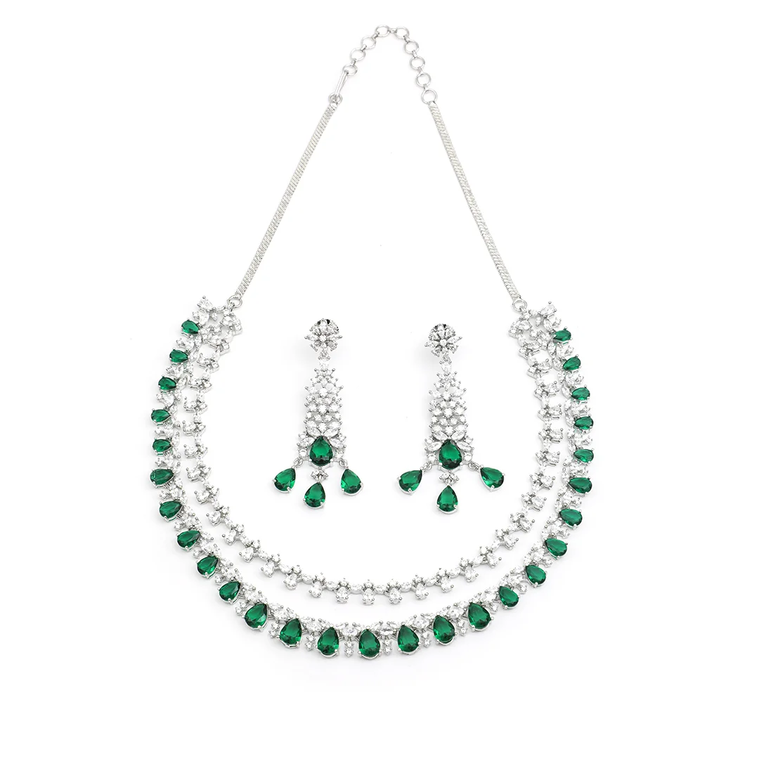 Silver Crafted Necklace Earring & Light Green And CZ Stone Set For Women’s