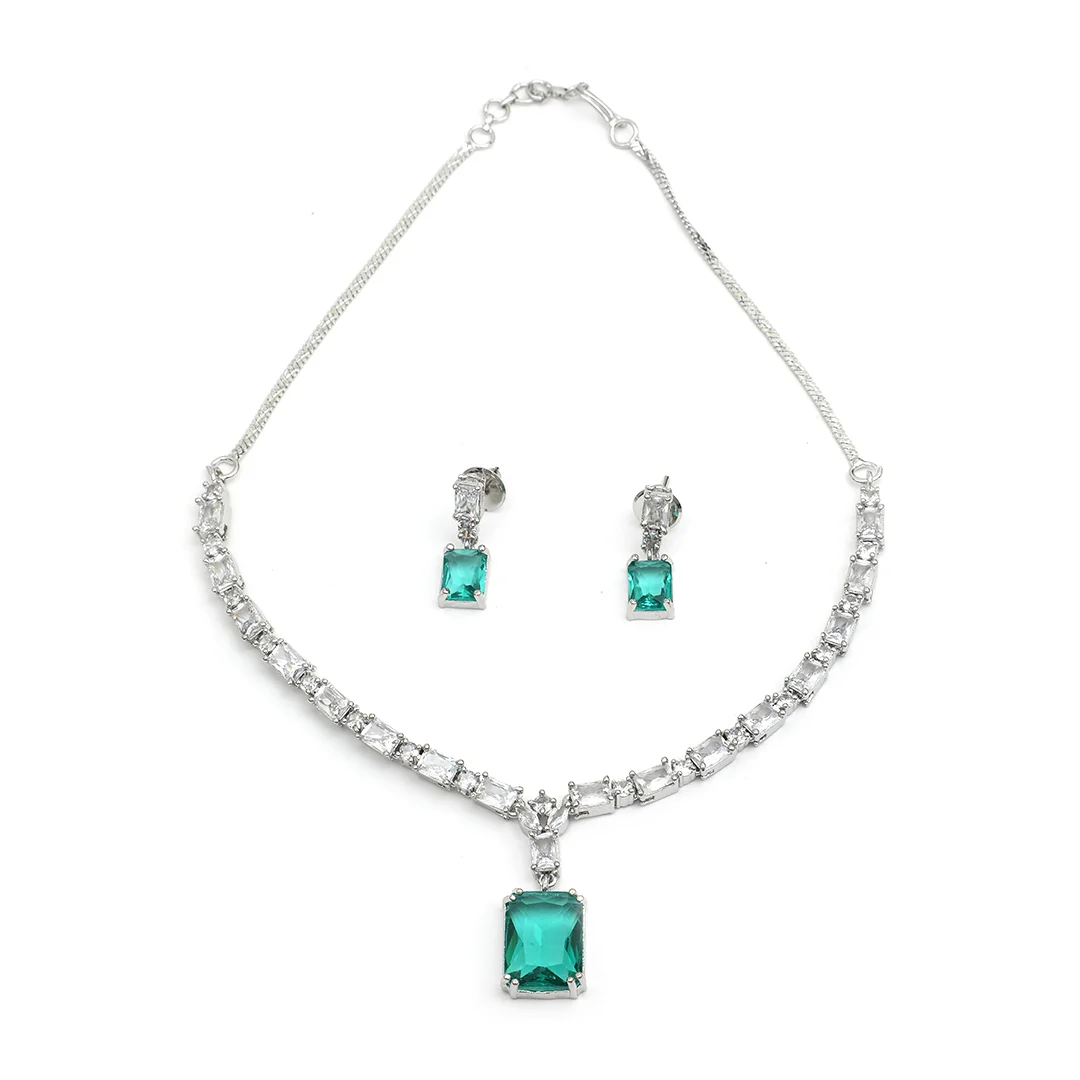 Silver Crafted Necklace Earring & White Center Emerald Stone Set For Women’s