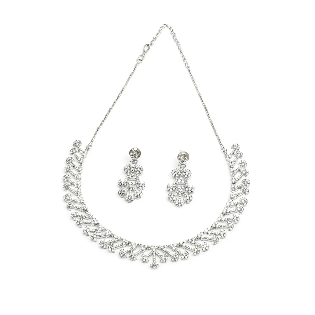 Silver Crafted Necklace Earring & White CZ Stone Set For Women’s